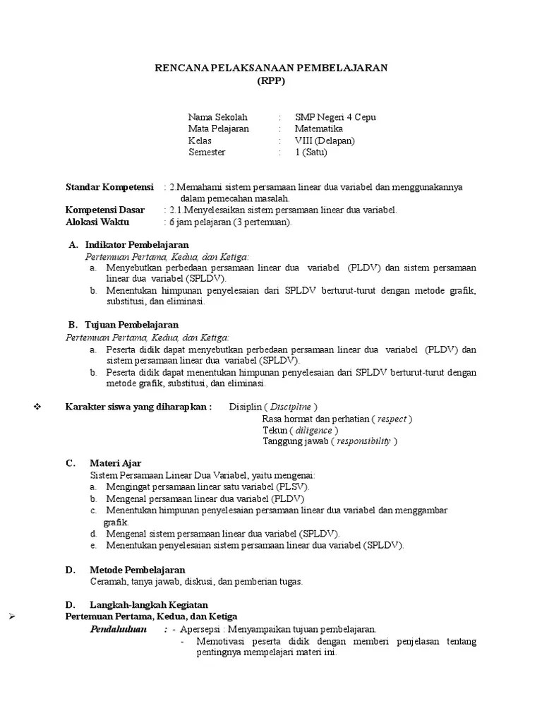 Sma negeri 3 solok selatan. Menggunakan spldv, spltv dan sistem pertidaksamaan linear dua variabel (sptldv) untuk menyajikan masalah kontekstual dan menjelaskan makna . Rencana pelaksanaan pembelajaran (rpp) nama sekolah : Menentukan penyelesaian sistem persamaan linear dua variabel. 1.1 mendeskripsikan konsep sistem persamaan linier dua dan tiga variabel serta pertidaksamaan linear dua variabel dan mampu menerapkan berbagai strategi .